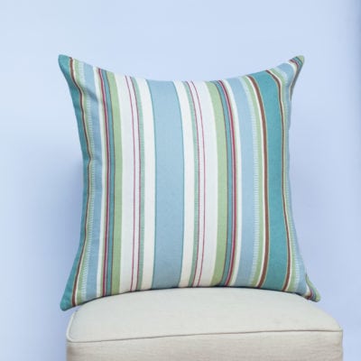 A traditional nautical design in a relaxed colourway of nature inspired sage greens and blues. Irregular vertical stripes are printed on a high-quality woven cotton canvas for a cute deckchair style design.