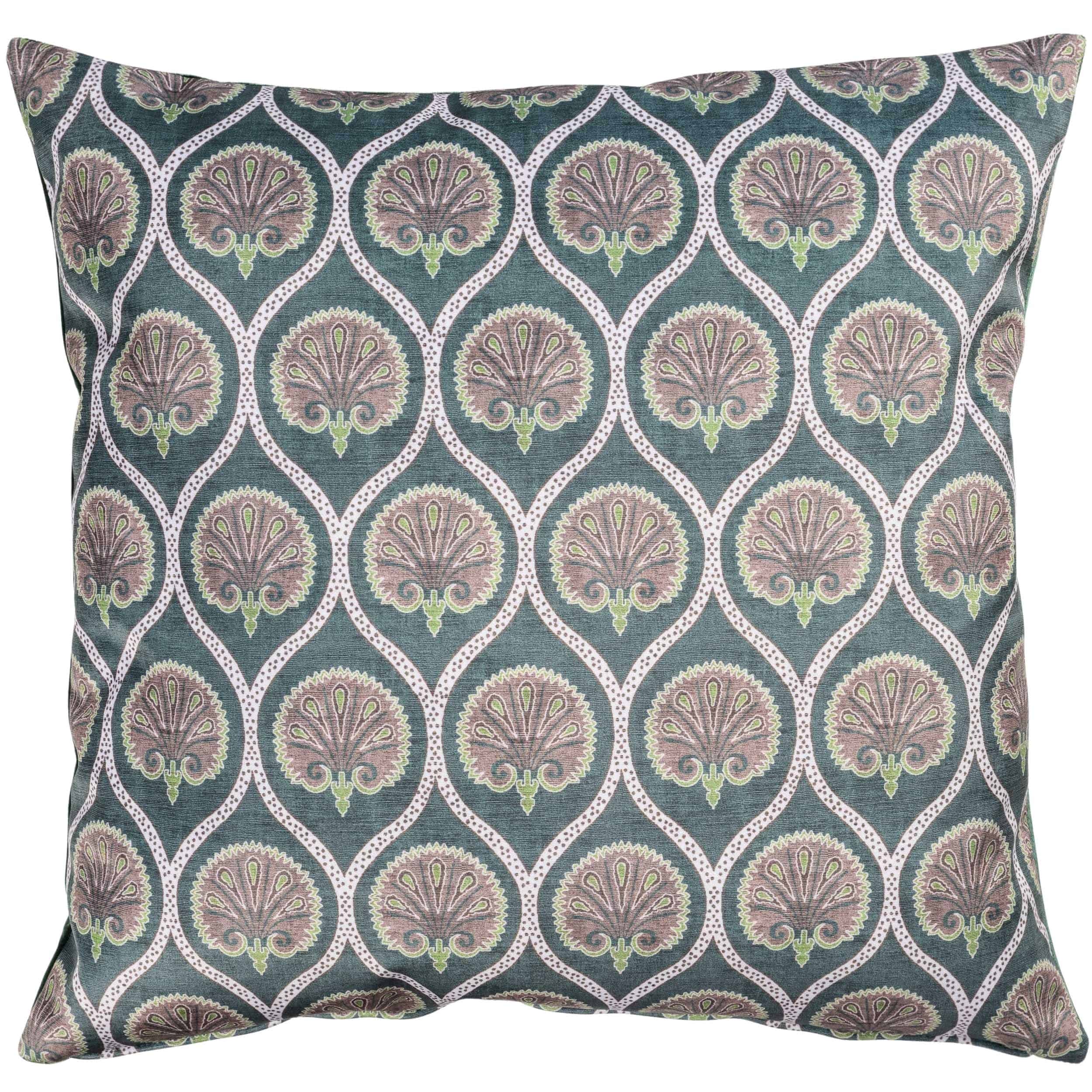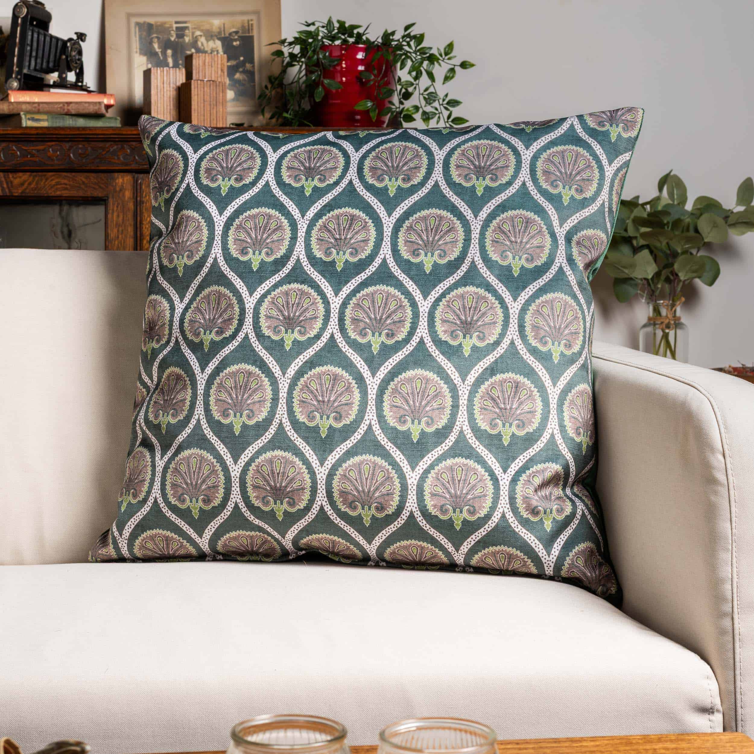 Damask Fan Velvet Extra-Large Cushion in Jade Green