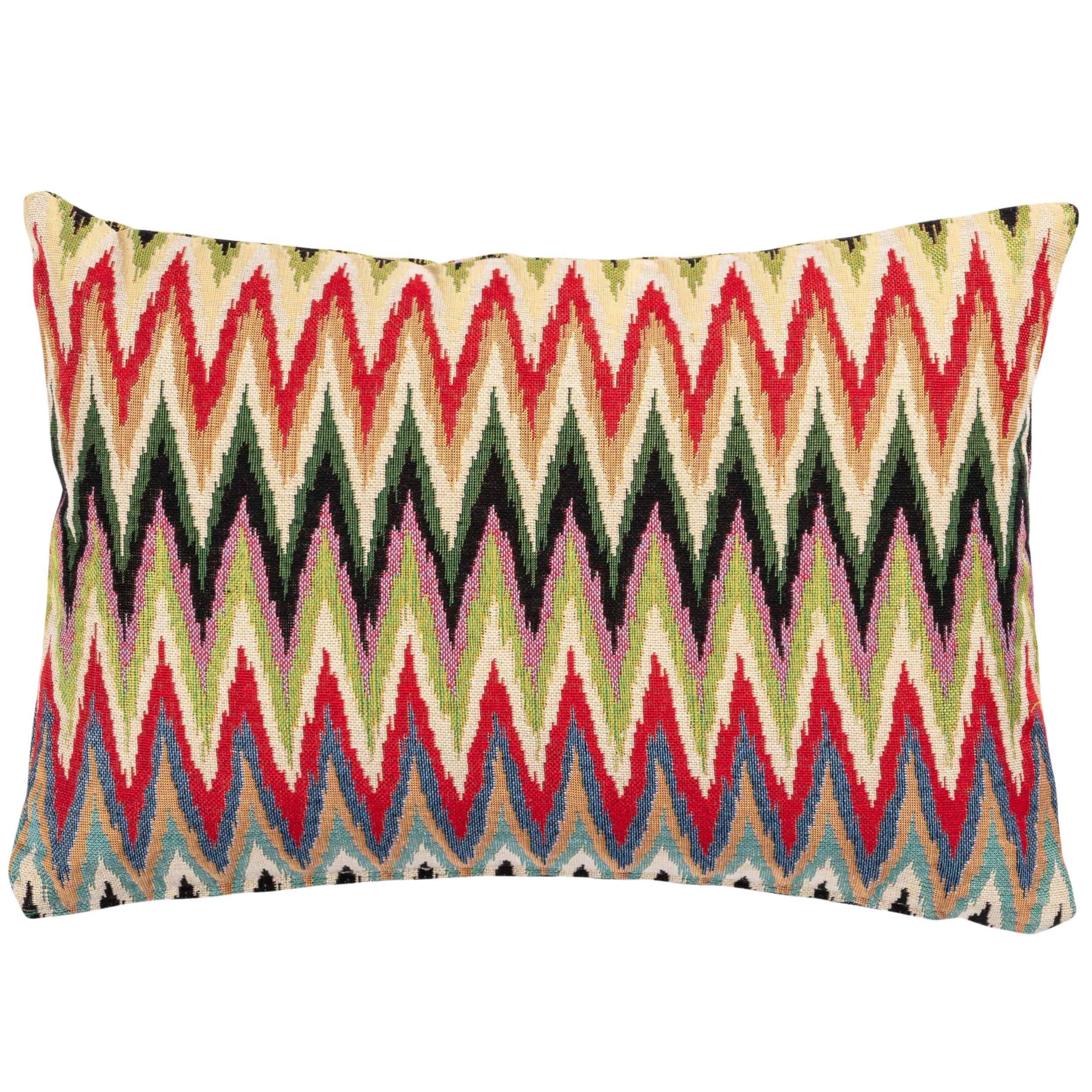 A stunning woven tapestry cushion with a bright chevron design. Made from heavyweight traditional Kilim style tapestry this cushion makes for a bold centrepiece in any modern contemporary interior.