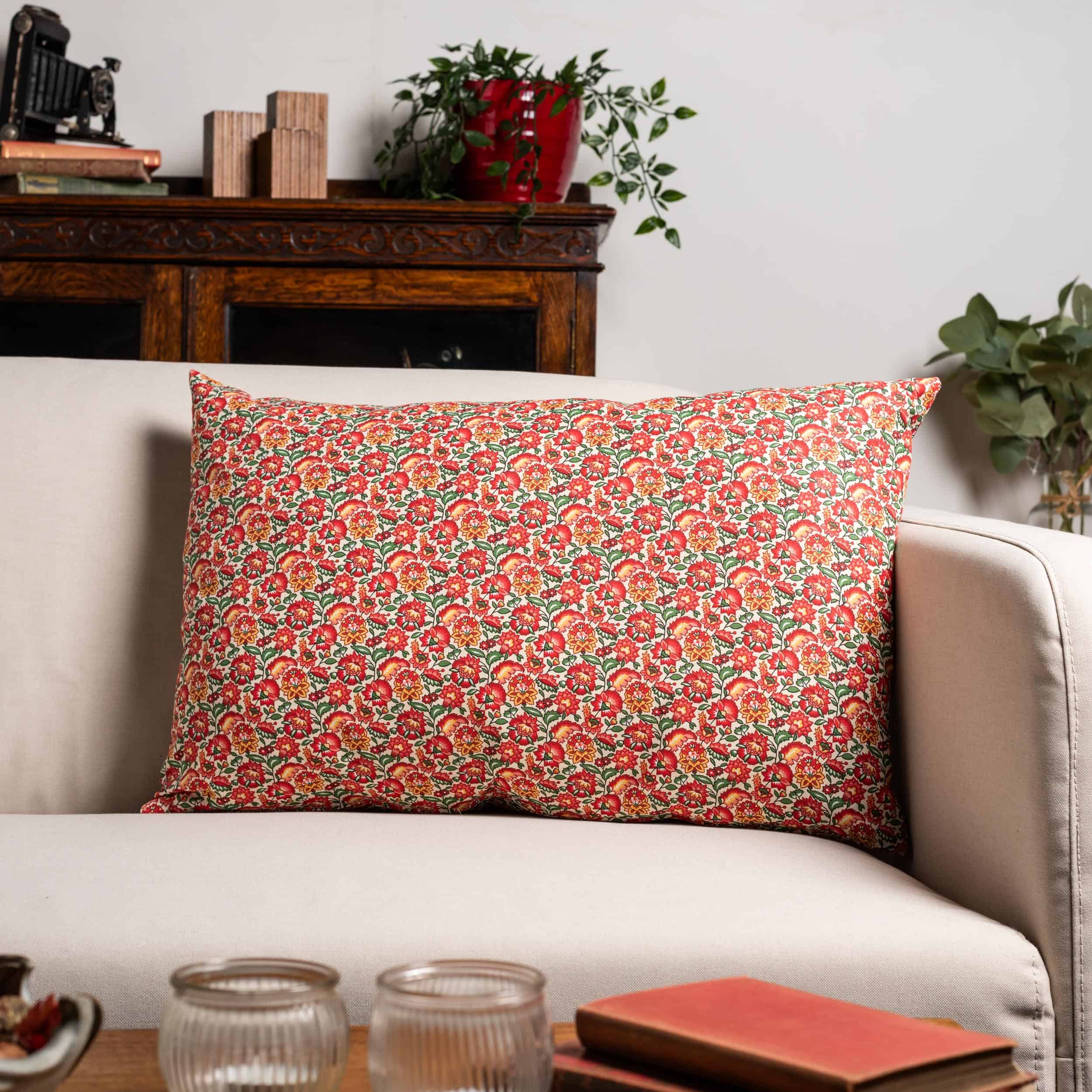 Heritage Garden Floral Print XL Rectangular Cushion in Poppy and Primrose