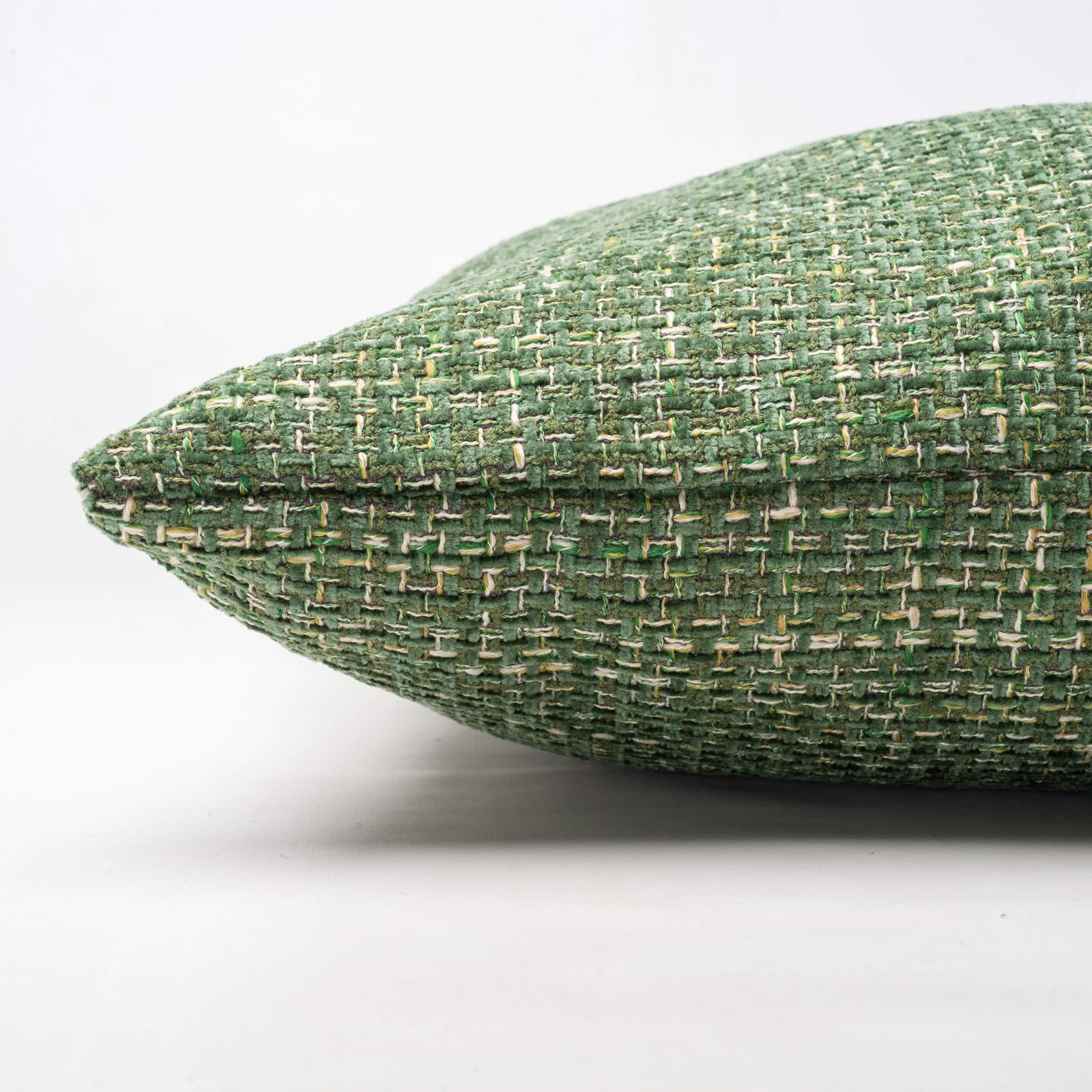 Add warmth and depth to your modern home this fall with a beautifully textured and vibrant cushion cover. Woven in an eye-catching moss green with subtle flecks of contrasting green for added dimension, this heavyweight fabric is perfect for layering on sofas or armchairs in mid-century or rustic interiors.