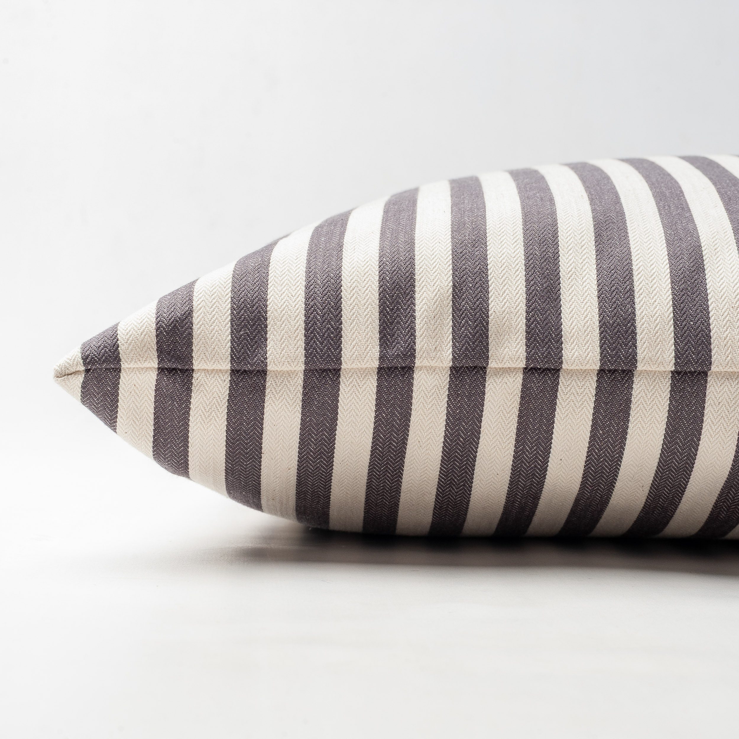 Wide-Width Nautical Ticking Stripe Boudoir Cushion in Grey