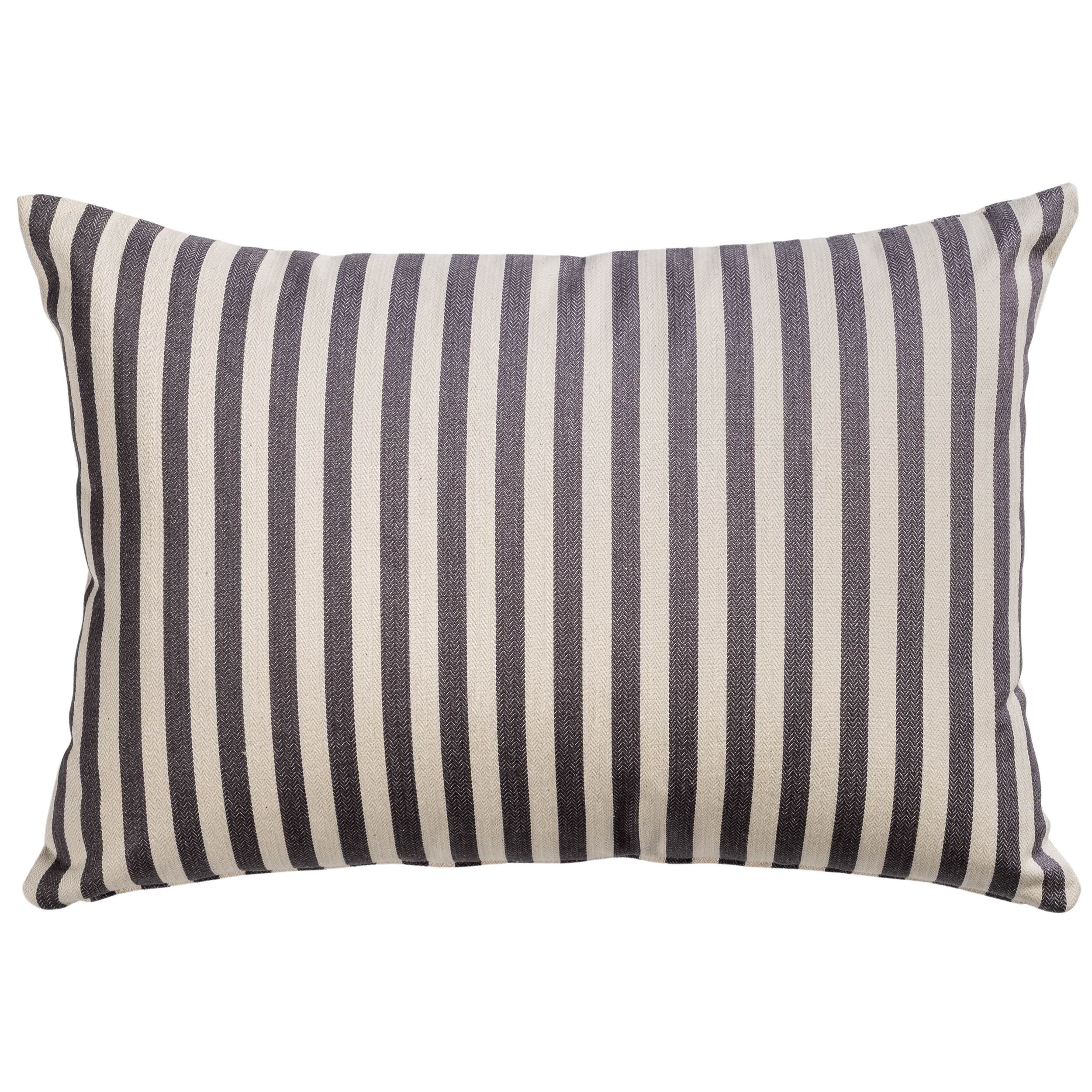 A simple maritime design with wide-width ticking stripes – the perfect, subtle design for contemporary seaside homes. In airy shades of charcoal grey and off-white, this 100% crisp cotton cushion is inspired by traditional nautical patterns for a timeless feel.