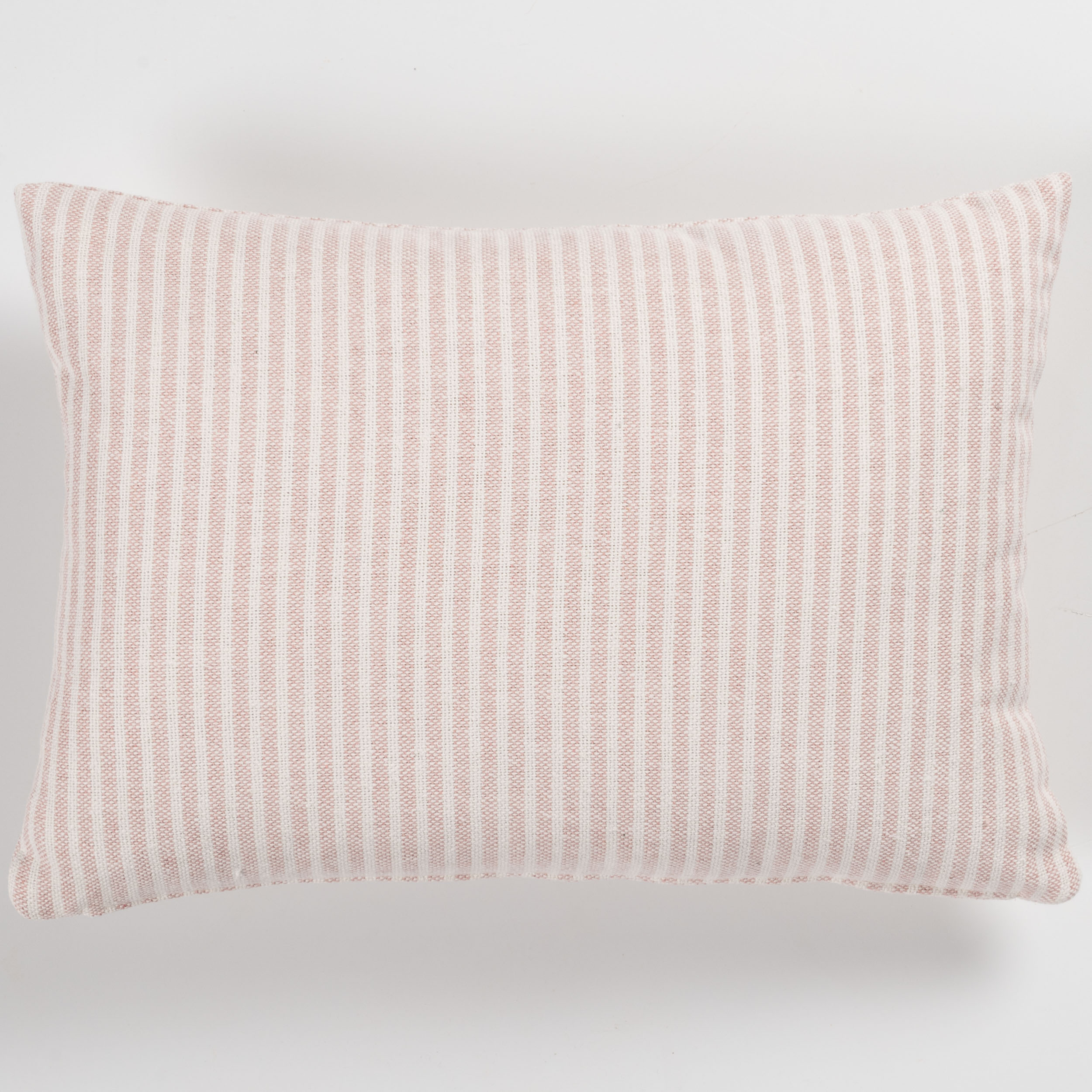 Woven Ticking Stripe Boudoir Cushion in Rose Pink