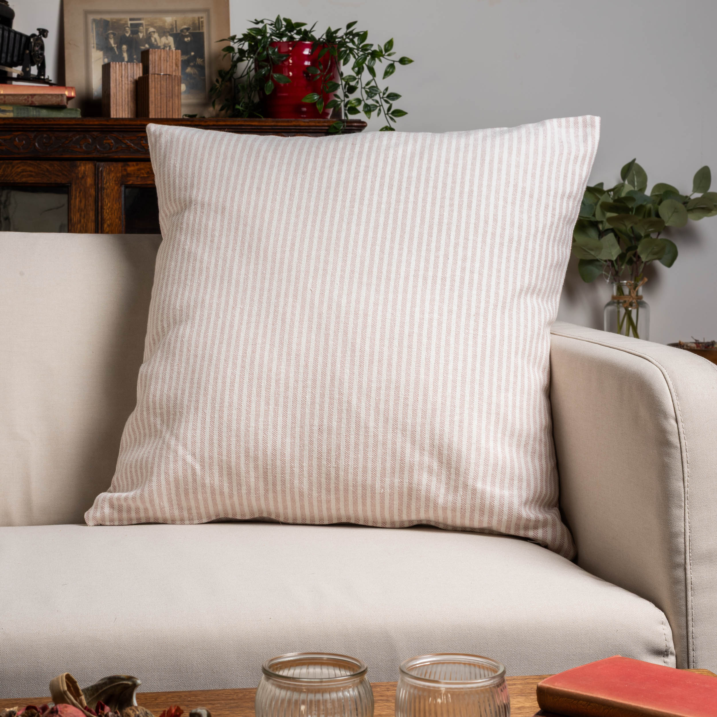 This understated nautical inspired cushion cover features an elegant woven ticking stripe design in soft rose pink, the perfect feminine finish for seaside homes. Hand crafted from a textured cotton blend cloth, this woven cushion cover oozes vintage charm.
