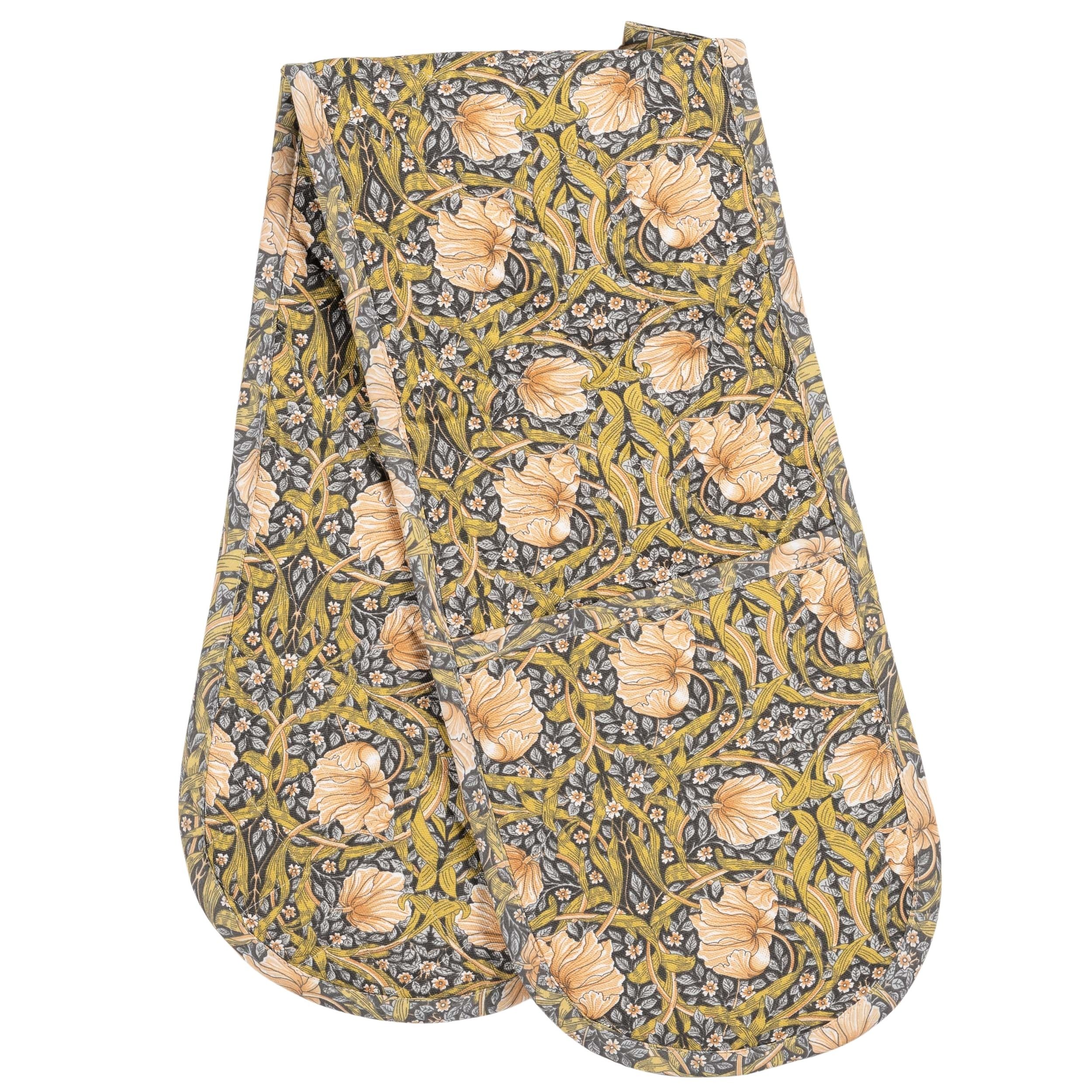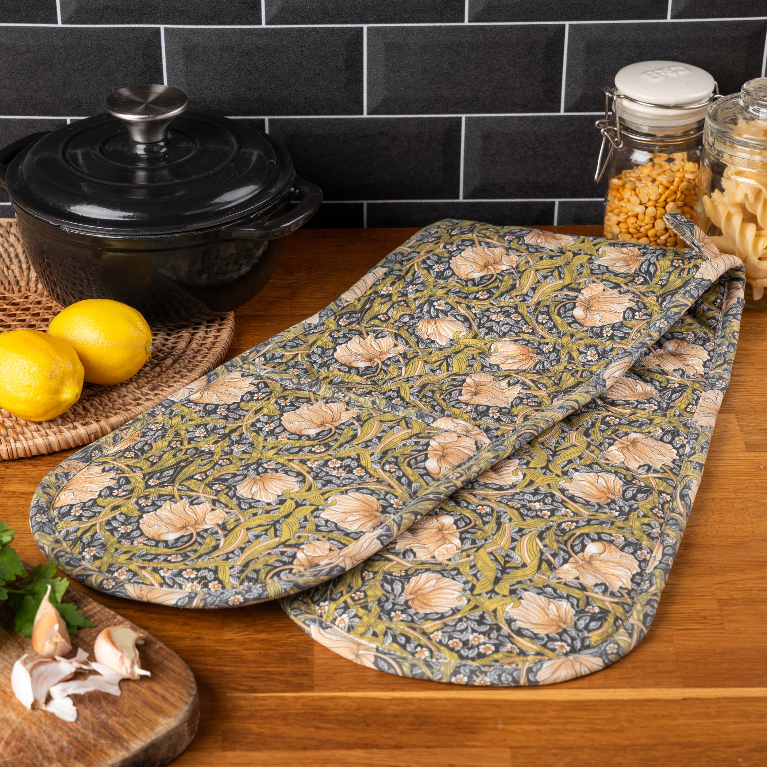 A beautifully feminine piece of art featuring complex floral motifs and weaving leaves, these genuine William Morris double oven gloves showcases the artist’s signature botanical vibe. Crafted from 100% cotton and easily washable, these oven mitts seamlessly blend functionality with timeless nature-inspired beauty. The perfect kitchen accessory for adding a touch of elegance.