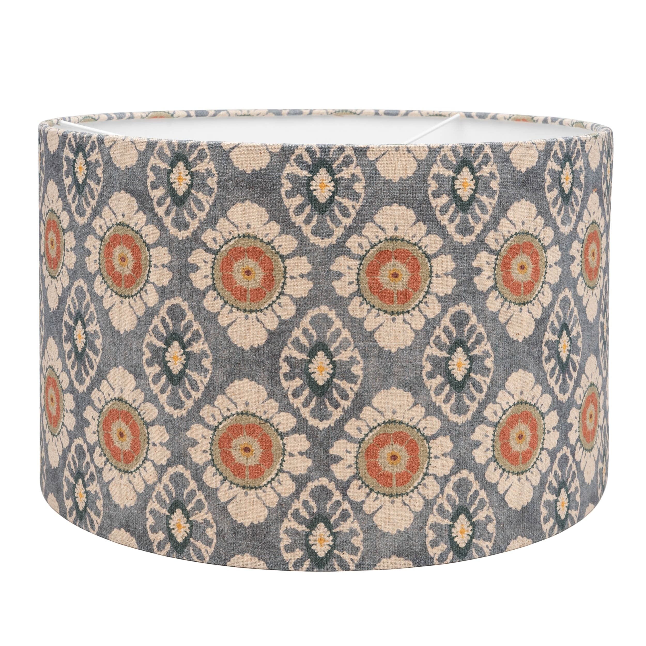 Printed on a soft natural linen-blend cloth, this lampshade oozes artisan charm. Inspired by traditional Indian block-print designs, and adorned with rhythmic floral medallions in delicate cornflower blue, burnt orange and soft ivory, the textured fabric make it perfect for lighting up your boho home.