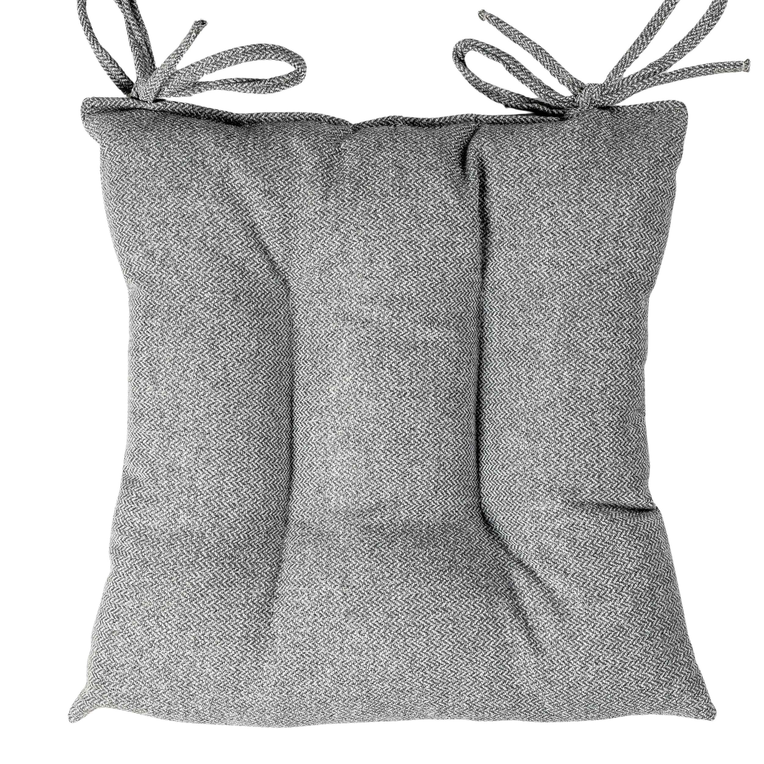 Classic Herringbone Tweed Quilted Seat Pad in Stone Grey