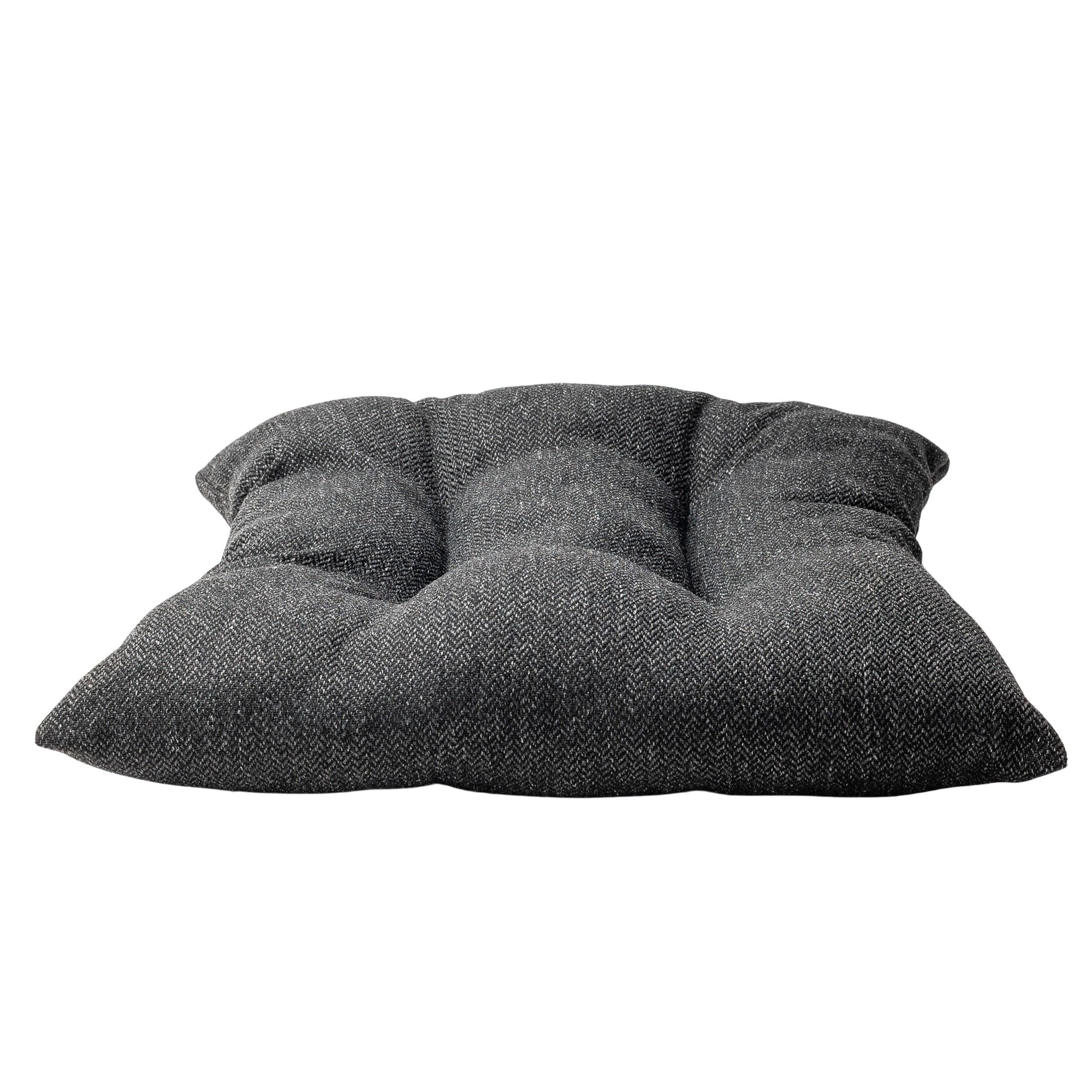 Classic Herringbone Tweed Quilted Seat Pad in Charcoal Grey