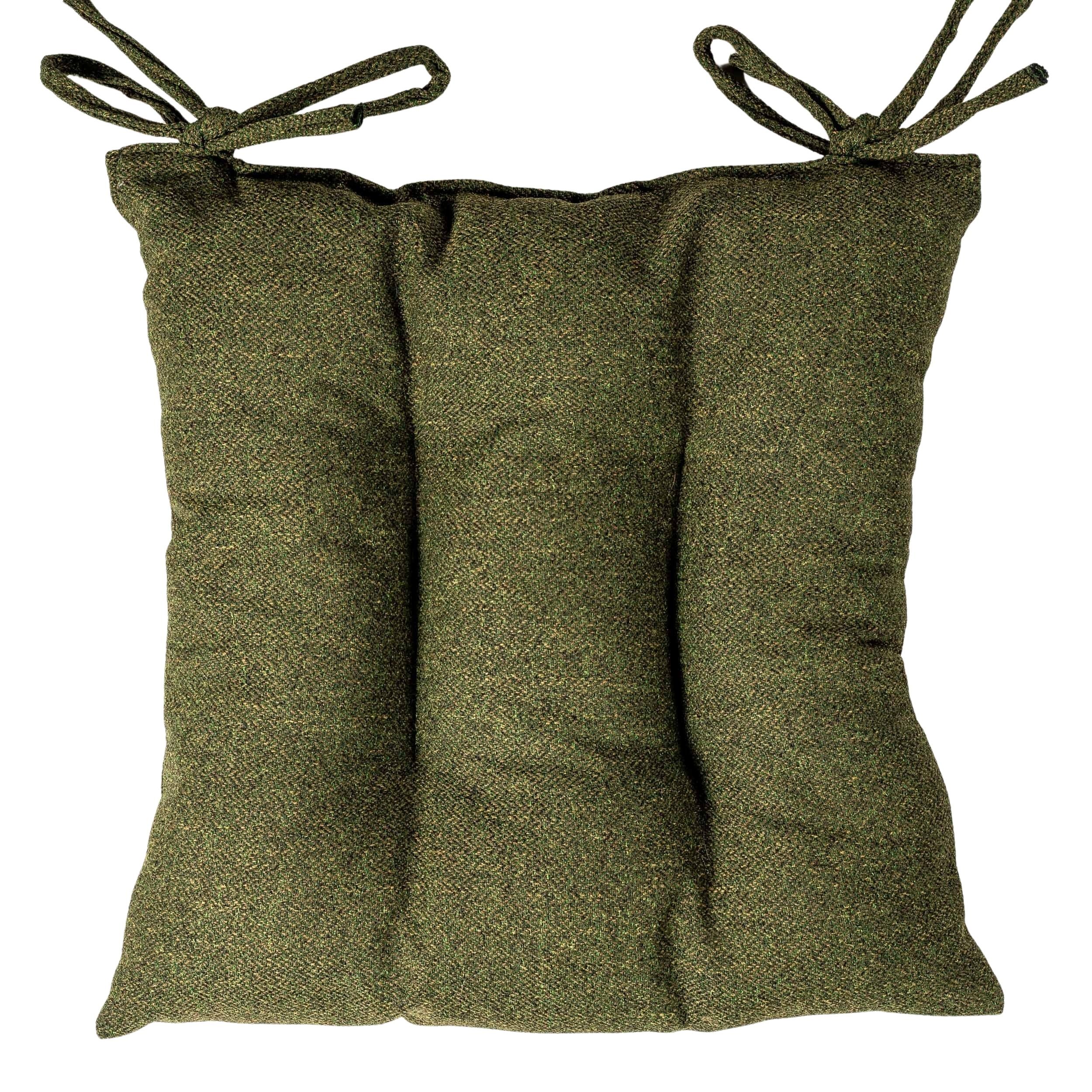 Classic Herringbone Tweed Quilted Seat Pad in Vintage Green