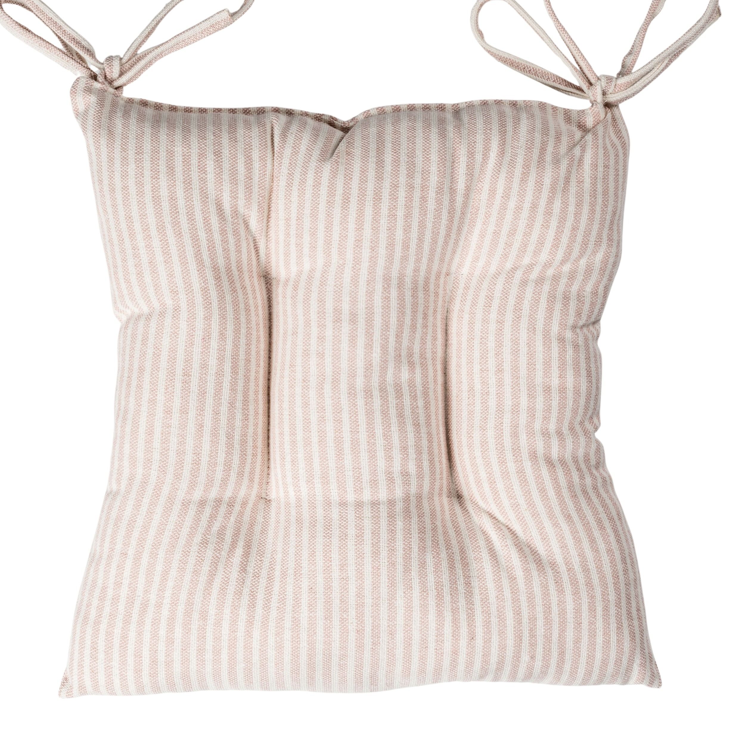 This understated nautical inspired seat pad features an elegant woven ticking stripe design in soft rose pink, the perfect feminine finish for seaside kitchens. Hand crafted from a textured cotton blend cloth, this woven quilted seat pad oozes vintage charm.